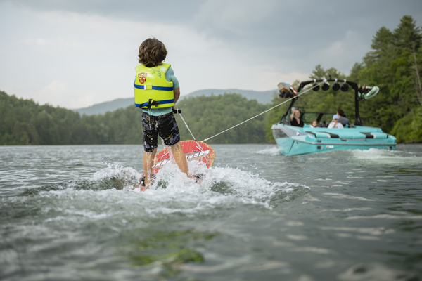 With the P.S.P. and Surf Gate, the driver can dial in the wakes and waves to make the perfect watersports playground for any rider, every time. Wearing the Surf Band, the rider can control the Surf Gate, speed and stereo volume right from the board.